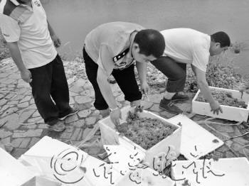 近日,滨州市森林公安局破获一起省林业厅督办重大贩运青蛙案,现场查获青蛙7000余只,办案民警冒雨将青蛙放生。