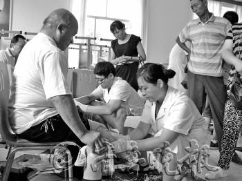 18日,山东省假肢矫形康复中心的专家小组来到烟台,在烟台军供站为烟台市六区内的近100名肢体残疾人进行了残情鉴定、现场测量和取型,这些肢体残疾人员将在年内免费安装上假肢或矫形器具。
