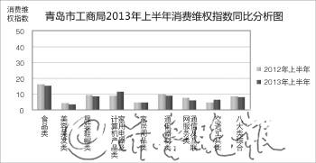 杨帅 制图 本报7月18日讯(记者 曹思扬) 18日,市工商局12315申诉举报指挥中心发布上半年消费维权指数,共受理各类申诉举报案件11902件,平均消费维权指数为7.97,食品投诉仍高居榜首。 据了解,上半年市工商局12315申诉举报指挥中心共受理各类申诉举报案件11902件,食品等八大类商品和服务消费维权指数案件7591件,平均消费维权指数为7.97。上半年,申诉举报热点仍集中在食品、家用电器及计算机产品、通讯器材等三大类。其中食品投诉高居榜首,自2011年以来一直蝉联榜首。 工商人员介绍,上半年食品类维权指数为15.43,同比下降0.80。其中2月份春节期间食品类指数高于其他月份。5月开始,随着天气转暖,指数逐渐上升。市民反映的主要问题有:个别商家食品安全意识淡薄,存在过期、变质肉制品、奶制品及蛋糕等在架销售问题;少数商家涉嫌销售假冒名牌肉制品及酒类;个别海鲜市场摊位销售的海鲜有异味等。 家用电器及计算机产品维权指数为11.34,同比上升2.25。市民反映主要问题有:个别家用电器售后服务人员技术水平有待提高,多次维修仍不能找不出症结所在;送货、安装时间拖延较长,安装过程中巧立名目乱收费问题较多;少数计算机产品销售商在销售过程中存在误导、诱导消费等问题。 通讯器材维权指数为8.70,同比下降1.22,通讯器材类指数上半年走势较平稳。市民反映的主要问题有:个别小商贩销售翻新机、假冒名牌机等产品;有的商家售后服务存在故意拖延维修时间之嫌;个别手机质量不过关,购买不久就出现死机、卡机、待机时间短等问题。 消费维权指数 消费维权指数是每天、每周、每月、每季度、每年消费者重点关注的投诉项目占此时段受理投诉总量的百分比。该指数起到“风向标”的作用,如果连续几天食品维权指数比较高,市民在选购食品时就要更加留意了。