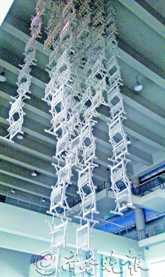 作品描述:几张凳子连接起来,就变成了一席席帘子。