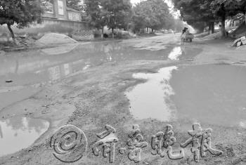 | 路面坑洼不平,积满了雨水。 本报记者 郭庆文 摄 |