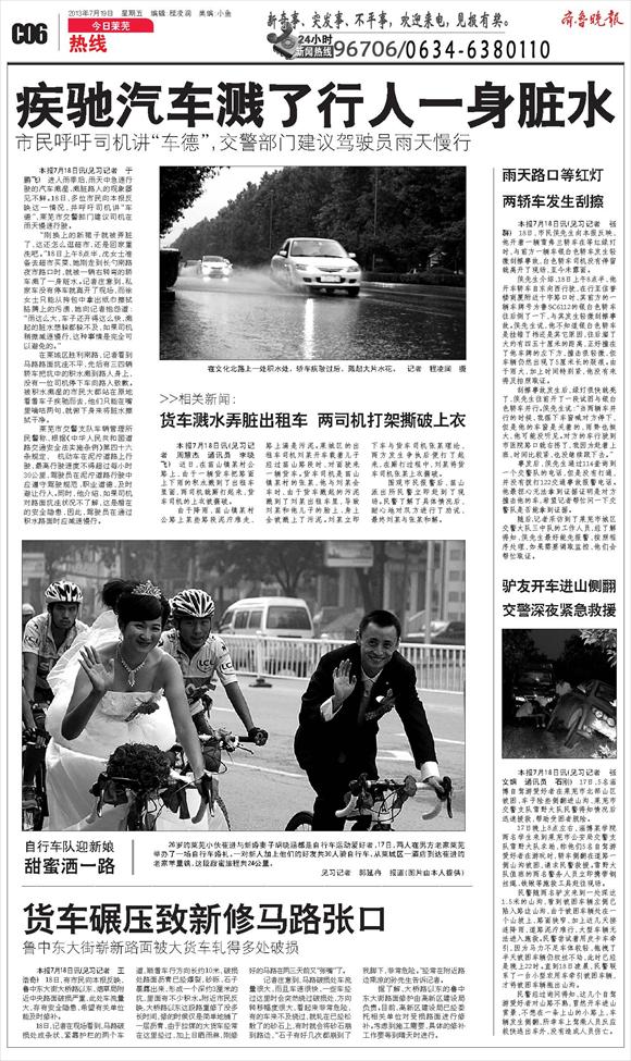 货车溅水弄脏出租车 两司机打架撕破上衣