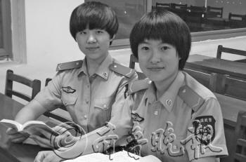 | 武警山东总队的两位大学生女兵吴艾蔓(右)和张颖(左)。(受访者供图) |