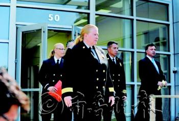 | ▲6日,韩亚失事客机现场的一辆消防车旁,叶梦圆的遗体被防水布盖了起来。 |  | 19日,圣马特奥县法医办公室和旧金山消防局举行记者会。 (中新) |