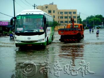 | 在仓南路以南500米的路段上有大面积积水,只有大型客车可以涉水通行。