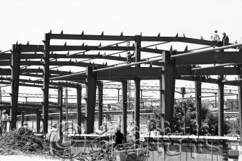 21日,火车站公交车换乘中心院内,火车站的临时候车室正在紧张建设中。据工作人员介绍,临时候车室的构架已完成,再有大约20天可投入使用。 本报记者 王小会 摄