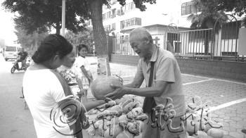 | 本报报道后,好心市民来买老人的西瓜。本报记者 张建丽 |