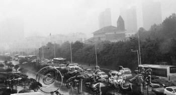| 因道路积水,滨海大道上拥堵的车辆排了3公里长。 |
