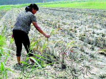 21日,经济开发区许营镇付庄村村民向本报求助,由于近期降雨,农田积水难排,村里有近30亩玉米被淹,面临绝产,还有20多亩庄稼地被淹,已经给村里反映,但一直没有给处理,希望相关部门管一管。 现场>> 玉米枯黄倒伏,有的根部已烂 被淹的庄稼地位于聊牛路付庄村段的两边,21日上午10点多,记者跟随村民探访,在现场看了被淹的20多亩地,地里就像刚灌溉完一样,水深的地方约10厘米,不少地方没水,但一踩就陷下去。 在聊牛路南侧,有七八亩玉米地已呈现黑色,30厘米左右玉米苗枯黄,茎叶溃烂,全部倒在了地里。在聊牛路的北侧,虽然地里水少,但是玉米的叶子都发黄,村民拔起来一些,根部已经开始溃烂。 在聊牛路两边的土地,可以看到明显的沟痕,直接延伸到玉米地里。“这都是下雨造成的,路上的水太多,水直接冲开了土把庄稼地给淹了。”村民付先生说,下雨的时候他们都到田间来看,由于水太多,根本堵不住,眼看着庄稼地被淹。 “以前没事,雨水都随着路沟淌走了,现在聊牛路拓宽了,路边的水沟被填死了。”村民徐女士说,现在一下雨,路上的水就往地里淌,地里的水排不出去,庄稼都遭了秧。 村民付先生介绍,发现玉米地被淹,就向村里反映了。当时村里说给上级反映,但是一直没有处理结果。 村民>> 减产已成定局,反映还没回信 “家里就这两亩地,这是全家人的经济来源,玉米苗直接被淹死了,这可该咋办啊?”付庄村民徐女士家的玉米地全被淹了,她说反映了一个多星期了,村里还没有回信,没有人能帮忙解决问题,全家人都急坏了。 村民付先生在地边上拔了几棵玉米苗,边递给记者边说:“你看,玉米苗叶子都发黄了,根茎部也有腐烂,只要是没有路沟,以后还得淹,我们真没法过了。” 管辖付庄的张屠行政村张姓负责人表示,已经接到村民反映的庄稼地被淹的问题,已经给管区反映,会尽快处理。由于玉米苗比较小,地势低洼,水排不出去,村民又不愿意抽水,导致不少亩地被淹。 部门>> 民政部门已查看,会给予合理救助 管辖付庄的张屠管区刘姓负责人表示,由于村里地势低洼,经常淹,修路把路沟弄没了,也加剧了淹地的情况,现在管区非常重视,联系了民政部门现场查看,会给受灾的村民合理的救助。 付庄村的付姓负责人说,当时修路施工队填平路旁的排水沟,现在项目部都没了,新修的道路下水道排水不畅,导致大量水都流进了地里,路沟问题还会向上级汇报。 21日,记者致电济聊一级公路城区段项目部,一工作人员表示,现在公路建设完毕,并且已经交工,项目部不存在了,对于公路两侧的路沟问题不了解,他们施工都是按照测绘院设计的图纸要求建设,具体得问建设局。