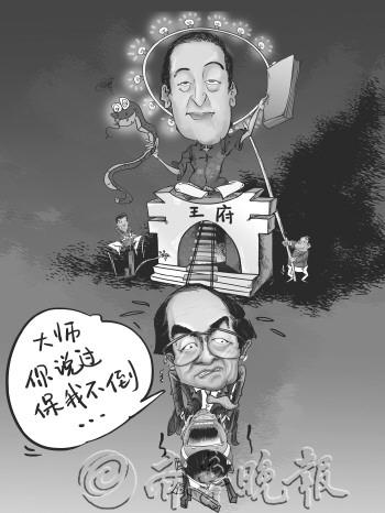 因马云等人的拜访,“气功大师”王林近日成话题人物:他住五层别墅,是江西萍乡首富;凭空盆变蛇等绝活结交名流;与高官关系密切;给商人放高利贷;被指控以收徒骗钱……他还自称是刘志军好友,曾说要帮他弄靠山石,“保你一辈子不倒”。(7月22日《新京报》) 漫画/曹一