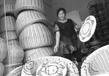 | ◤在博兴县湾头村,一村民正在整理草编制品。