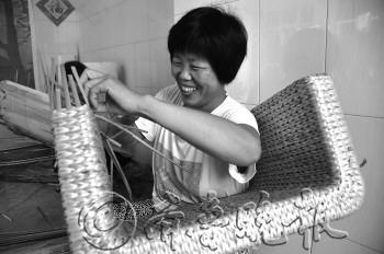 22日上午,记者在博兴县湾头村看到,村里主干道两旁几乎全是卖草编工艺品的商铺。当地妇女坐在小板凳上,拿着沾湿的蒲草,一会儿工夫,草鞋、草垫就编出来了。