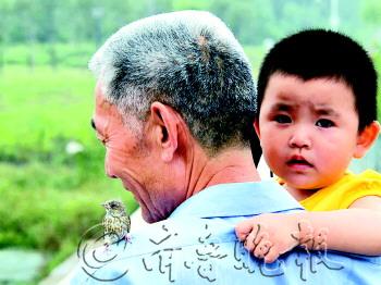 自述:大风吹落一只小鸟,路过此处的老人喂了它点吃的,小鸟竟不见外地落在老人肩上。