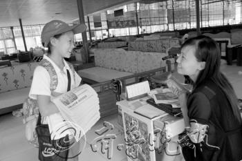 | 市民刘女士希望王梓萌能带她的孩子一起参加小报童活动。 本报记者 崔洋洋 摄 |
