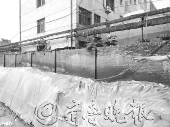 | 楼外不到两米,即是在挖的地基坑。 本报记者 任洪忠 摄 |