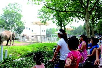 | 孩子们在动物园观看大象(资料片)。 本报记者 王光营 摄 |