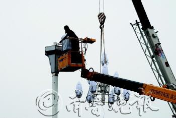 日照市政工程集团市政处近日对万平口大桥两侧的路灯进行了维护。据了解,此次是自2007年5月15日万平口景观大桥通车以来,对两侧路灯进行的首次维护,这次维护共更新7盏路灯,更换了部分损坏的灯罩、灯管。