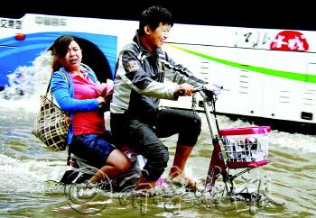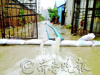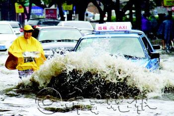 | 7月23日,一夜大雨后,城区利民路上积水及膝,车辆经过,掀起巨大的浪花。 本报记者 李军 摄 |  | “海”一样的积水,没能打扰孩子的清梦。 本报记者 李军 摄 |  | 城区医北胡同一处仓库用水泵排水。 本报记者 李璇 摄 |  | 利民路积水成河、车行如舟。 本报记者 李军 摄 |  | 积水已经没过了车轮。 本报记者 李军 摄 |  | 抱起孩子,趟过积水。