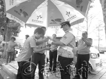 本报菏泽7月24日讯(记者 周千清) 烈日下,连续4个月在中华路上规范指挥通行的交警赢得市民赞誉。24日上午,菏泽市体育彩票管理中心工作人员专程为他们送来遮阳伞、遮阳棚以及茶叶等避暑用品,“他们尽职尽责,我们市民认可。” 在市民潜意识中,交警执法人员通常冷若冰霜、一丝不苟,他们对交警也少有敬畏之外的情感。可连日来在中华路各岗口执勤的这支交警队伍,打破了市民的传统看法。凭借良好形象、文明执法以及优质服务,这些交警不仅拉近了交警执法人员与驾驶人之间的距离,更赢得了社会各界的广泛认可。 24日,雨后的菏泽上空骄阳再次升起,炙烤大地,在室外停留不久就会汗流浃背。即便如此,菏泽市交警支队站岗执勤的交警们也没有丝毫怠慢,在骄阳下有条不紊地指挥着交通。上午9点多,中华路与人民路交叉路口处的执勤交警已汗流浃背,胳膊以及脸上黝黑的皮肤均能看出被晒的痕迹。据菏泽市交警支队宣传科科长唐家春介绍,现在约有100余名交警在路面执勤。 为了缓解酷暑给执勤交警们工作带来的不利,菏泽市体育彩票管理中心的工作人员为他们送来了“清凉”。“他们尽责我们认可,向他们道声辛苦,也尽力为他们带去点清凉。”菏泽市体育彩票管理中心主任李兴乾说,这些执勤的交警非常认真,单位特地组织人员为他们送来遮阳伞、遮阳棚、以及茶叶等避暑物品,并与交警一起,将遮阳伞与遮阳棚支起来,架起一片阴凉。。 除了人民路与中华路交叉口的执勤岗点,体彩中心工作人员还分别到中华路与牡丹路交叉口、中华路与解放路交叉口等执勤岗点为执勤交警送去避暑用品,“我们准备了30顶遮阳伞、30顶遮阳棚,以及40提茶叶,总价值约30000余元。”李兴乾告诉记者。 作为接受方,唐家春表示,感谢社会各界对交警部门的关心,他们会将以更加饱满的热情,投身到城区交通秩序集中整治活动中,确保大家交通出行安全顺畅。