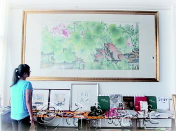 魏紫堂书画院内,省美术家协会副主席朱全增的作品引人注目。