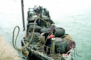 红岛特殊的泥质滩涂适宜蛤蜊的生长。图为渔民满载收获的蛤蜊归来。 本报通讯员 赵伟 摄