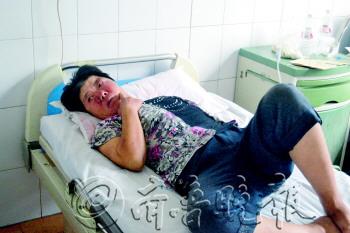 见习记者 王茜茜 摄 |  | 受伤的高女士躺在病床上。 见习记者 王茜茜 摄 |