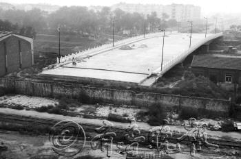 | 三八路上的运河大桥主体早已完工,路灯也已架设完毕,但两侧的引桥连接处却迟迟不动工。 本报记者 马志勇 摄 |  | 狭窄的三八路铁道涵洞。