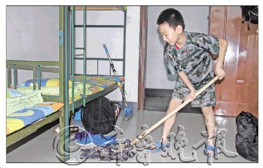 25日上午10点,经过一个小时的奔波,来自济南、青岛、烟台、威海的小营员们已准备就绪,第三期海岛军令营正式开营! “阿姨,这是我第二次见到大海,真漂亮啊!”登上去往刘公岛的客轮后,从济南来的王之昊很兴奋。青岛来的丁格格也是一脸满足,“完全不一样的感觉,蓝天,碧云,大海……”说着,她便拿着自己的相机一个劲儿地“咔嚓”。经过半个小时的轮渡,营员们拖着行李、怀揣着好奇心上岸了。 “从今天起,你们就是一名小士兵了!”负责带队的彭教官让营员们排成三列,并把军营的纪律向大家强调了一遍。看到教官严肃的表情和挺拔的身姿,很多营员们忍不住直了直腰杆,这精气神儿和登岛时大不一样。 简单的嘱咐和队形整理之后,营员们回到了自己的宿舍。令记者没想到的是,孩子们居然忍住炎热,开始了被单的盥洗以及宿舍的打扫。女营员们拿起自己的脸盆,床单、被单,在洗刷间里一字排开,用力地洗着。男孩儿们则拿起手中的拖把、扫帚,把地面拖了一遍又一遍。张世豪悄悄告诉记者,“这些活在家从来没干过。” 中午11点半,午饭准时开始了,营员们每8人一组,围在圆桌上吃饭。“吃饭时候,不能浪费,不准挑食,有特殊情况要打报告。开饭!”彭教官一声令下,忙活了一上午的营员们终于可以大口大口地吃饭了。“我不能吃辣,吃辣椒过敏,怎么办?”陈佳辉跑过来向教官打报告。“好啊,给你换份菜吧。不过你这种打报告的精神很可贵!” 下午2点半,营员们午睡时间结束,彭教官走进宿舍教大家铺床单、叠“豆腐块”。“被子叠好了要放到床头的中间”,教官说完之后,李雯昕立马把被子放到了床中间,“怎么这么奇怪呢?”她自己嘟囔着。同来的小伙伴儿於睿婷立马纠正了她的做法,“是床头中间,不是床中间。” 整理好内务之后,营员们开始了新的体验。队列训练、站军姿、立正、看齐,虽然汗流浃背,但大家很快进入状态,没有一人打退堂鼓。 军令营作息时间安排:早晨6点起床,6点40分吃早餐;12点吃午餐,12点30分至14点午休;18点吃晚餐,21点30分熄灯休息。 巾帼VS须眉 由于天气闷热,营员们顶着烈日,拖着行李,来到了营地。“什么时候能去宿舍看看啊?”这成了大家最关心的话题。很快,彭教官便给大家分好了宿舍。一进宿舍,王佳怡立马拿起枕巾,号召大家换洗床铺。女孩子行动起来了,男孩子哪能示弱,赵海旭去宿舍扛起拖把,带领着男生们开始拖地了!