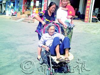 作品描述:一位老人在医院看完病后,因行动不方便,儿女们临时征用童车载她回家,很是感动啊。