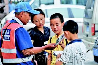 | ◤小报童和停车场一位工作人员交流起当天的新闻大事。