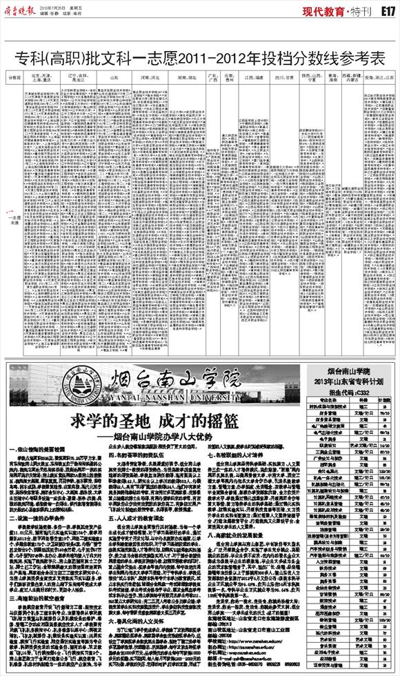 专科(高职)批文科一志愿2011-2012年投档分数线参考表