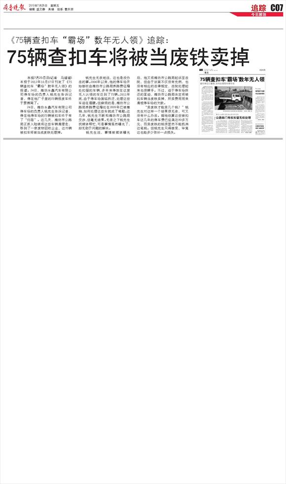 75辆查扣车将被当废铁卖掉