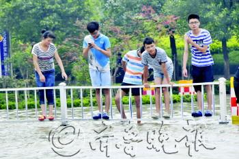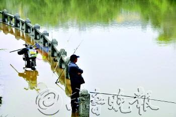 |  | 雨后的大运河水满外溢,胆大的市民跑到河边钓鱼。 本报记者 邹俊美 摄