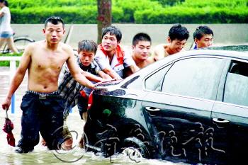 |  | 柳园路上,一辆轿车抛锚,众人上前帮忙推车。 本报记者 李军 摄
