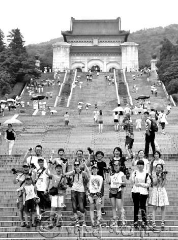 26日,齐鲁小拍客夏令营团员在南京中山陵前合影。由本报主办的“江南影像”齐鲁小拍客夏令营第一期从济南启程,本报资深摄影记者全程陪同教授摄影知识。营员们在游览烟雨江南的同时,学习各种摄影技巧,在短时间里变身摄影达人。