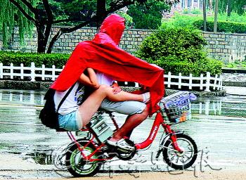 自述:雨中前行,护身护腿。