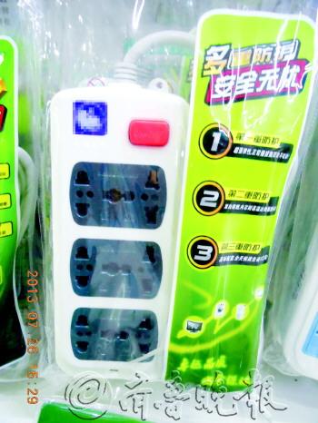 文/片 本报见习记者 杜彩霞 店老板仍极力推荐“万能插座” 28日,记者走访了章丘济南义乌小商品市场,在一楼的几家商店里都有“万能插座”在售卖。一位五金店女老板极力推荐记者购买“万能插座”。她说,“这个插排孔多,功率大,又便宜,同样的插排,公牛的要70多元,这个给你只按25元。”记者没有在老板推荐的这款插座包装上找到关于执行国家标准的字样。 在一楼一家电器商店里,店主对记者说,“我们知道插座都执行新国标了,但是有些厂家也生产原来的“老款”,我们也就顺带着进货。因为很多顾客点名要那一种,家里很多圆形的插头只能用那种插座,而且现在执行新国标的插座大多为公牛这样的名牌,价格高,买的相对较少。” 据了解,公牛等品牌的插座每个店的价格差异不大,利润有限,这也是店主向顾客推荐其他插座的原因之一。 一些非新国标插座在混淆标准 在采访中记者发现,在商店里售卖的插座除了公牛、子弹头等品牌严格执行新国标,在包装上注明“按GB2099.3-2008标准生产”的字样,其他品牌有些根本没有这样的字样,有些是万能插座,但在包装上也标注了“按GB2099.3-2008标准生产”的字样。一款骏马牌的插座在外包装上只有“通过ISO国际质量体系认证”的字样。 记者在采访中发现,在芙蓉路一家超市里,货架上摆放着两个品牌的插座,一种公象牌插座有“万能插座”的款式,并且其技术参数一栏里标注着“GB2099.3-1997”的字样。 插座新国标已经执行有两年多,但是大部分市民和商户对此还不是很清楚。在义务小商品批发市场,对于是否知道现在执行新国标,记者采访了卖插座的五金店老板,老板说,“知道,不就是把插座的外形改了嘛。”在超市购买插座的市民王先生说,“没听说过执行“新国标”的事,平时买插座就是按照家里需要,再看看价格。”而在超市售卖插座的导购员也不清楚“新国标”。