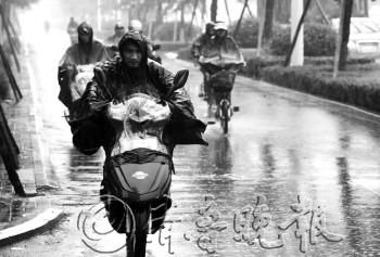 | 白天酷热难当,傍晚 急雨淋透回家人 |