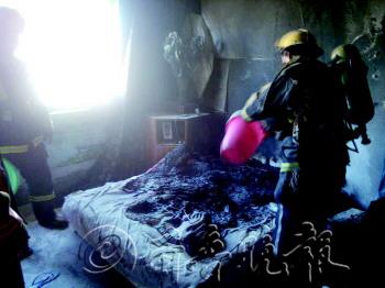 本报热线6610123消息(记者 苑菲菲) 29日下午3点多,芝罘区幸福十六村一居民楼6楼发生火灾,浓烟熏醒了隔壁睡觉的邻居。幸亏扑灭及时,除一张床被烧毁外没有造成较大损失。初步怀疑是屋内电插排负荷过大,导致短路着火。 29日下午3点40分,芝罘区幸福十六村一居民楼6楼出租屋内,一位租客在休息时被飘进屋的浓烟熏醒。这名租客赶紧跑到楼外,并拨打了119求助。据悉,着火的6楼被隔成小单间对外出租,浓烟就是从其中一个锁着的小单间飘出来的,透过门缝能看到里面的明火。 消防人员赶到后,踹开着火房间的门发现,这个20平方米左右的房间里,靠墙的单人床正在燃烧,床边就是笔记本电脑和电视。消防人员用楼道灭火器把明火扑灭,然后接了盆水浇在燃烧后的床上,防止复燃。 现场燃烧最厉害的是靠床的一个插排,屋内另一个插排上插满了手机充电器、万能充、电视插头、水壶插头等,着火原因初步怀疑是插排超负荷运行短路后着火,又引燃了床。 奖励线索人张先生30元 消防人员在给着火的床灭火。 目击者供图