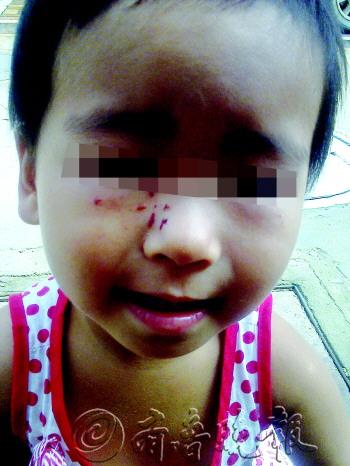 | 右脸现多处抓痕,幼儿园老师称是孩子自己抓伤的 | |