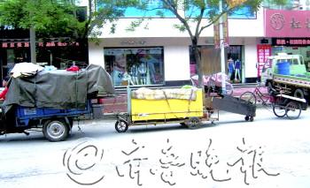 作品描述:前面载着后面拉着,瞧这买卖做的,“排场”挺大啊。
