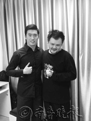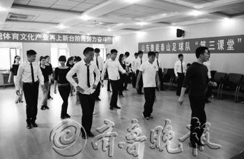 | ◤钟华龙(左)和李传韵在台下合影留念。 |  | ▲钟华龙为鲁能足球俱乐部球星上“第三堂课”,担任国标舞教师。 |