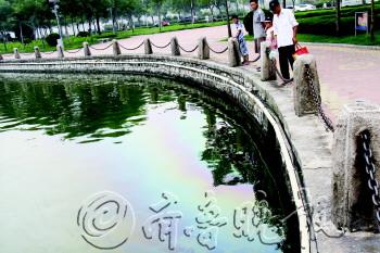 本报7月29日讯(记者 张建业) 29日上午,不少市民发现在明月湖沿岸近百米的水域,竟然覆盖着一层薄薄的油膜。据风景区工作人员介绍,有可能是急雨区的某个路段废油泄露,流入湖中,不会对鱼类和环境造成太大影响。 上午10时许,在明月湖风景区靠近湖滨路一侧,覆盖着一层宽约数百米的油膜,在阳光下显得五颜六色。周围很多居民介绍,并没有看到有人往湖里倒油。在颜色气味最重的地方,发现了一个还在不断往外扩散废油的进水口,油膜从这个入水口呈圈状向外扩散。“从气味上闻应该是汽油或者废机油。”市民王先生说。 明月湖风景区一位负责人告诉记者,从昨天开始就已经出现这种现象,但昨天较轻微。这个排水口连接着德州二中以西一大片区域的雨水管,正常情况下应该只是往新湖里排放雨水,至于为什么会夹杂着废油,他们也正在联系市政部门。 据介绍,这种情况应该是急雨区的某个路段上,有废油泄露,然后随着前几天的降雨,流入了新湖。“随着新一轮的降雨,油膜肯定会被冲淡,对鱼类和环境影响应该不大。”该负责人同时也表示,风景区暂时还没有清理油污的能力。