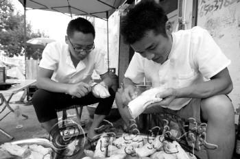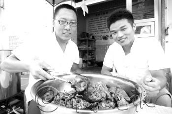 文/片 本报记者 邓兴宇 曾月工资上万,不甘为人打工 他叫杜鲁飞,今年27岁,黝黑的皮肤,憨厚的笑容。2005年,杜鲁飞考入威海职业学院学习韩语专业,在校成绩优秀,毕业后曾在威海、大连等地的造船厂工作,月工资6000元左右。他叫张晓伟,今年28岁,曾在山东科技职业学院就读建筑技术专业,毕业后从事工地建筑施工等工作,河南、深圳、苏州很多城市都留下过他的脚印。2010年回到菏泽改行做起农药、酒水等销售工作,月工资最高时领过10000多元。 说起开始创业的决定时,杜鲁飞兴奋地说:“上大学的时候就想过自己创业,不甘心一辈子为别人打工,老家在牡丹区大黄集镇经营着一家饭店,店里的一道拿手菜——秘制猪蹄倍受大家欢迎,所以才有了卖猪蹄的这个创业想法。” “在四川卖拌猪蹄的杨成曾,每天能卖200多只猪蹄,一天有6000多元的营业额,月营业额20万左右。他的创业故事着实激励了我,我觉得只要我们踏踏实实干也一定能成功。”张晓伟自信地说。 “我们俩即是初中同学,又是高中同学,共同的创业想法让我们再一次走到一起。”杜鲁飞告诉记者。 创业艰辛,曾遭家人反对 杜鲁飞2013年初回到菏泽,有了卖猪蹄的想法后,先是跟老家饭店里的张师傅学习制作猪蹄,张师傅开始还以为杜鲁飞只是一时心血来潮。“大学生怎么能卖猪蹄呢,传出去还不丢人。”但杜鲁飞确铁定了心跟张师傅学,进货、去毛、上色、过油、小火炖,认认真真。自以为学的差不多了,杜鲁飞和张晓伟就买来生猪蹄自己尝试着做,做好了就邀请张师傅和朋友们来品尝,提建议。开始做的味道真不行,一次不行两次,两次不行三次,就这样经过10多次尝试,张师傅被感动了,把从来不外传的汤料秘方传授给杜鲁飞。 “孩子正是谈婚论嫁的年龄,放着好好的工作不干却要卖猪蹄,这要是传出去连个媳妇也不好找啊。”杜鲁飞的父母坚决不同意他卖猪蹄。但胳膊拗不过大腿,杜鲁飞和张晓伟说干就干,从选址、装修、考察市场,两个大学生冒着酷暑跑遍菏泽的大街小巷。选好地址后,他们从积蓄中拿出一万三千元钱作为启动资金,购买了冰柜、原材料等必备品。7月26日,“猪蹄控”店在二人的憧憬中正式开业。 有过销售经验的张晓伟在开业前期还拿出200元钱印发5000份宣传单为自己的“猪蹄控”做宣传。开业当日,一天就卖出去140多个猪蹄,被硬拉来帮忙的杜鲁飞爸爸看到市民抢购的场面吃惊不小,逐渐由原来的反对改为支持。 “很辛苦,每天6点起床,晚上11点多才能回家,忙起来吃饭也没个点。但这份创业给我们带来的成就感是无比自豪的,现在只是刚开始,以后我们还希望能和酒店、超市联合,甚至开自己的连锁店。”