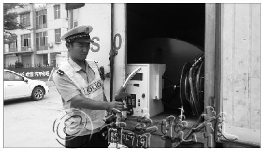 ▲民警依法查处存在安全隐患的加油货车。(图片由警方提供)