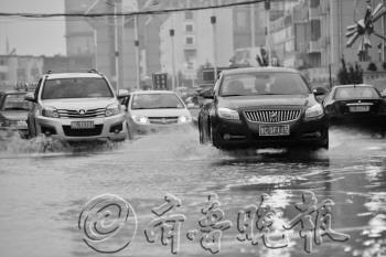 29日下午3时许,记者在张店金晶大道上看到,暴雨导致大多路面两侧出现较深积水,几辆疾驰的汽车溅起高高的水花,路边的行人避之不及。在金晶大道通往火车站的路段积水也较深,已淹没路牙石,车辆都选择靠路面中间浅水处行驶,交通出现短暂的拥挤。齐赛科技城至五里桥银座路段也在强降雨的袭击下出现了短暂的积水现象,兴学街和西二路处、杏园西路、杏园东路和东一路路口、新村东路、东四路也有一定的积水情况,不过排水系统比较通畅,大约1小时后,随着降雨停止,积水基本排尽,路面交通也恢复正常。