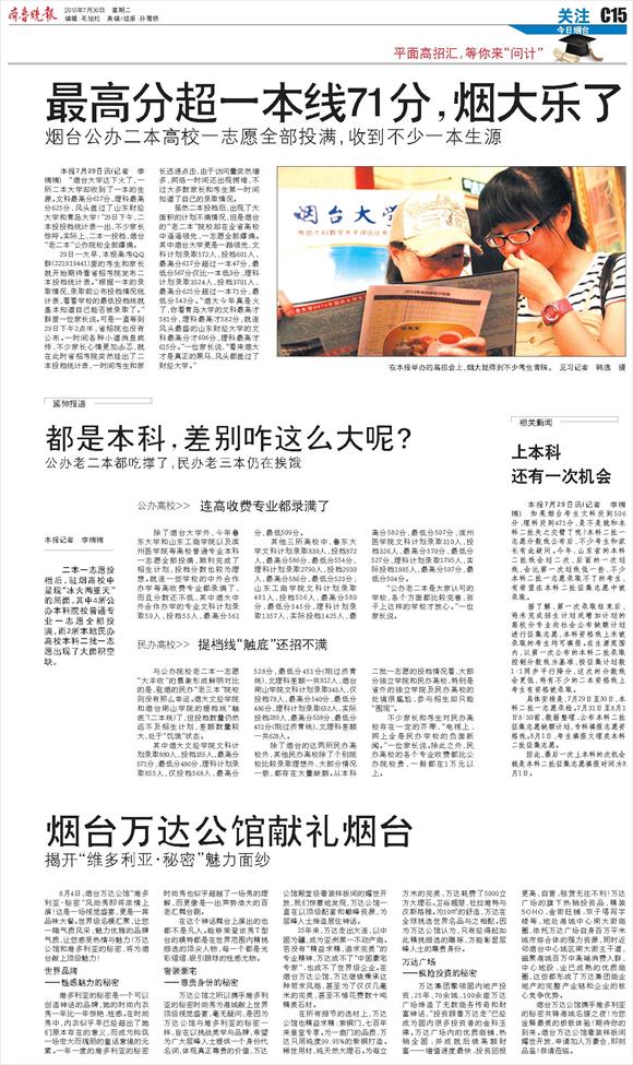 最高分超一本线71分,烟大乐了