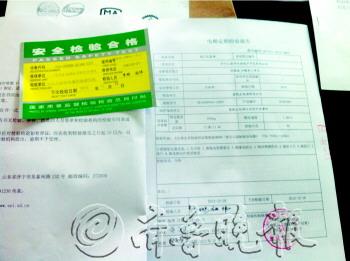 | 电梯常“死机”,居民乘坐时提心吊胆。 |  | 该电梯的定期检验报告。 庄子帆 摄 |