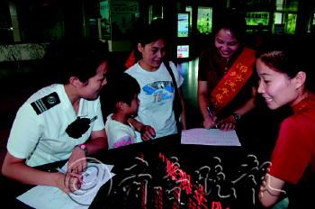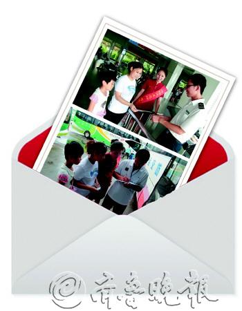 | |  | 管婷婷的妈妈在前台工作人员的提示下填写“包邮”护送单。 |