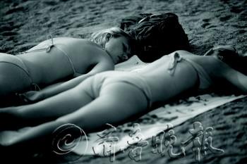 | 7月31日下午,两名来自德国的洋妞在一浴晒太阳浴。